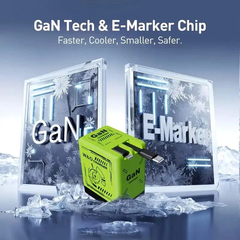 ⚡A+C Multi-Port 120W GaN Charger | Comes with a retractable cable for fast charging of all devices
