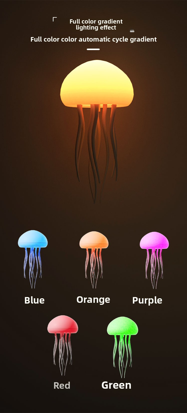 💡Intelligent voice controlled jellyfish lamp charging model full-color gradient atmosphere lamp outdoor creative night light