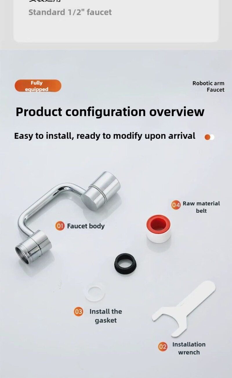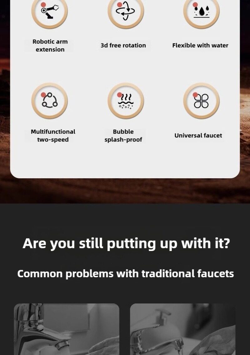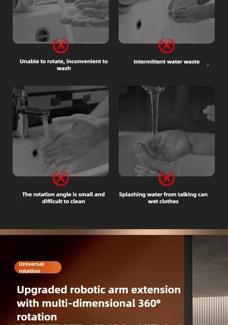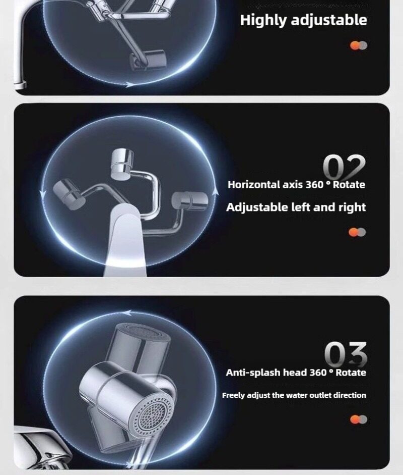 💦Water faucet extender, mechanical arm, multi-directional rotation, extension of faucet, anti-splash swing arm for washbasin