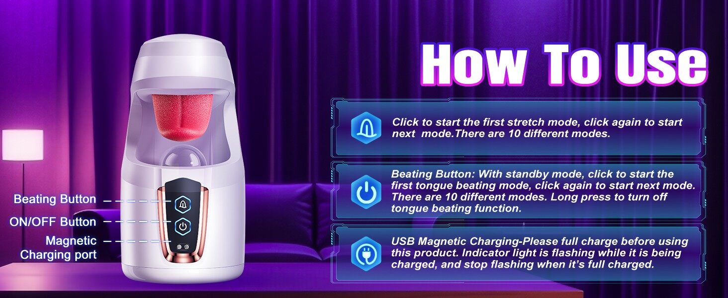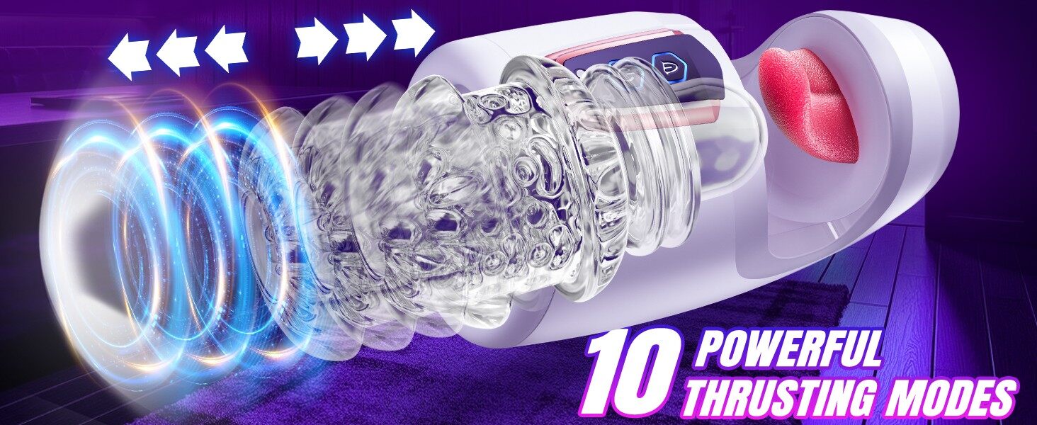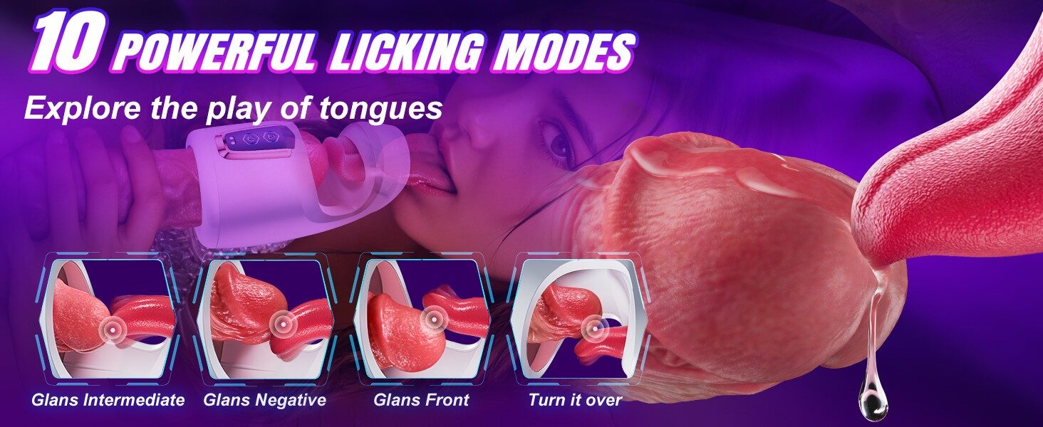 10 different licking modes, simulating the most realistic tongue, giving you different angles of glans licking experience, making you scream with pleasure.